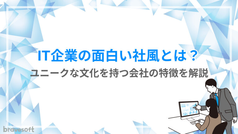 2025.10.20 トレンド・お役立ち情報 IT企業の面白い社風とは?ユニークな文化を持つ会社の特徴を解説 一般的にIT企業は、新しい技術やサービスを創造する特性から、固定観念にとらわれない柔軟な発想を重視する傾向にあります。社員が自由にアイデアを出しやすい環境づくりとして、ユニークな社風が生まれやすいと考