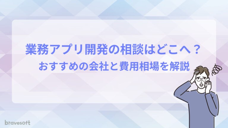 2025.11.17 トレンド・お役立ち情報 業務アプリ開発の相談はどこへ?おすすめの会社と費用相場を解説 業務アプリ開発は専門知識を要するため、自社で全てをまかなうのは困難です。良いアイデアを実現したいなら、開発会社やフリーランスエンジニアの活用を検討しましょう。本記事では、相談先や費用相場について詳し