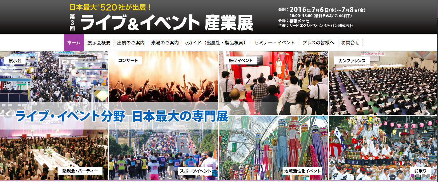 株式会社ブレイブソフトは、2016年7月6日(水)〜9日(金)に幕張メッセで行われた「第3回ライブ&イベント産業展」に出展しました。