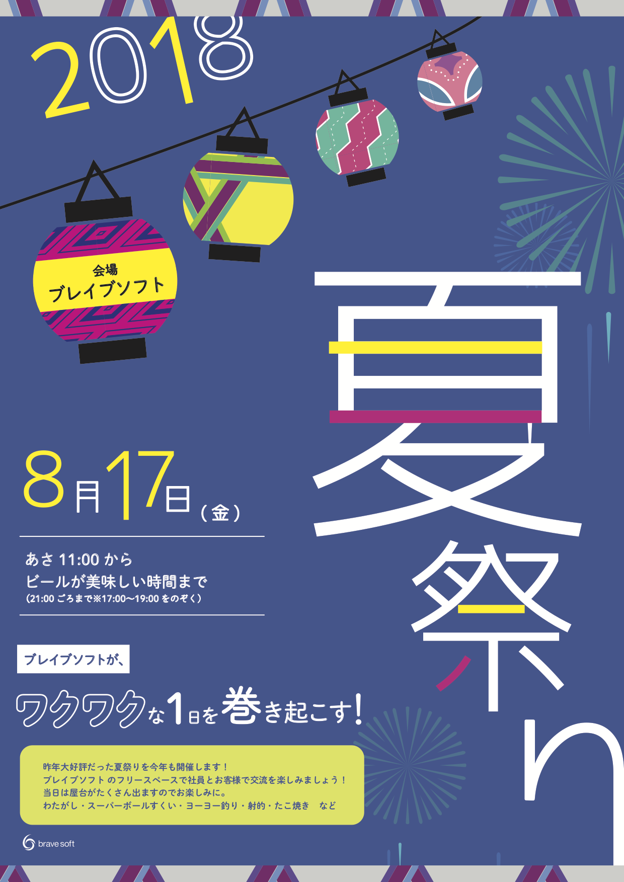 昨年ご好評をいただいておりました「夏祭り」を、2018年も開催することとなりましたのでお知らせいたします!