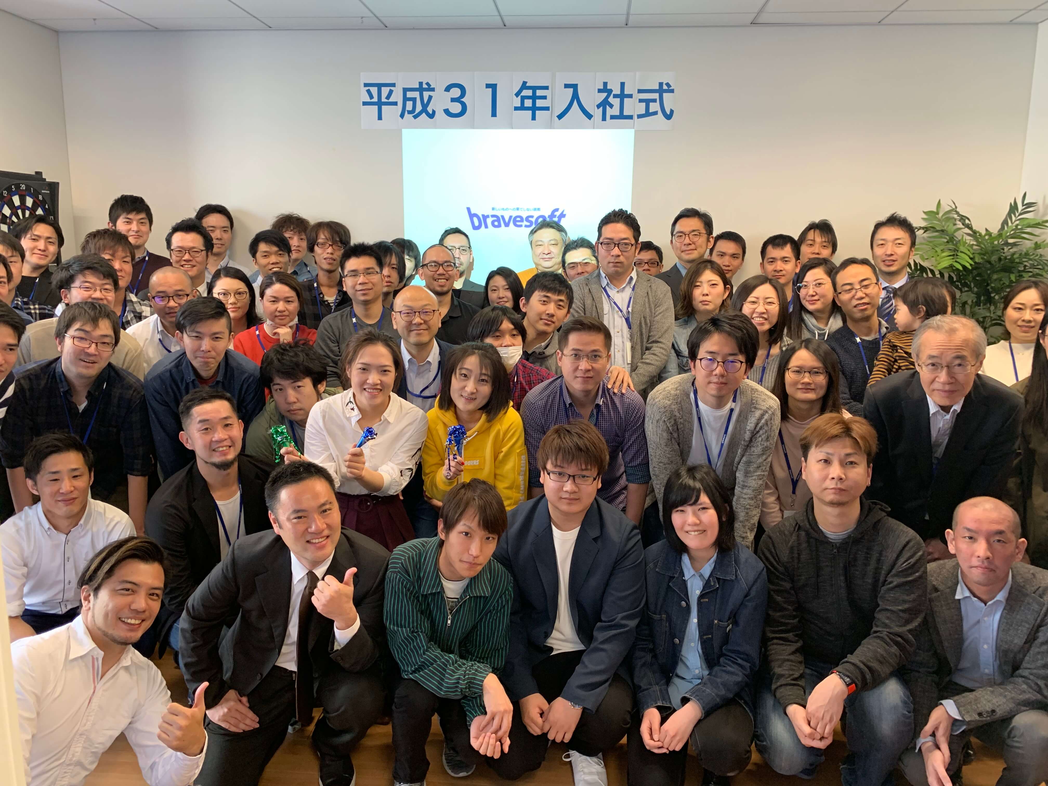 2019.04.01お知らせ 2019年入社式|新入社員を迎えました! 本日は入社式が行われ、新卒社員3名と中途採用4名を新たな仲間として迎えました。 これからブレイブソフトの一員として歩んでくれる7人を祝福し、社員一同でクラッカーを鳴らしました。社長からは、「仕事を好きになってほしい」とのメッセージが贈られました。今日から社会人生活を始める彼らのこれからの仕事への姿勢に前向きな影響を与えた言葉になったことと思います。 ブレイブソフトの社員は、残り1ヶ月の平成も、新元号「令和」も、新入社員共々邁進してまいります。