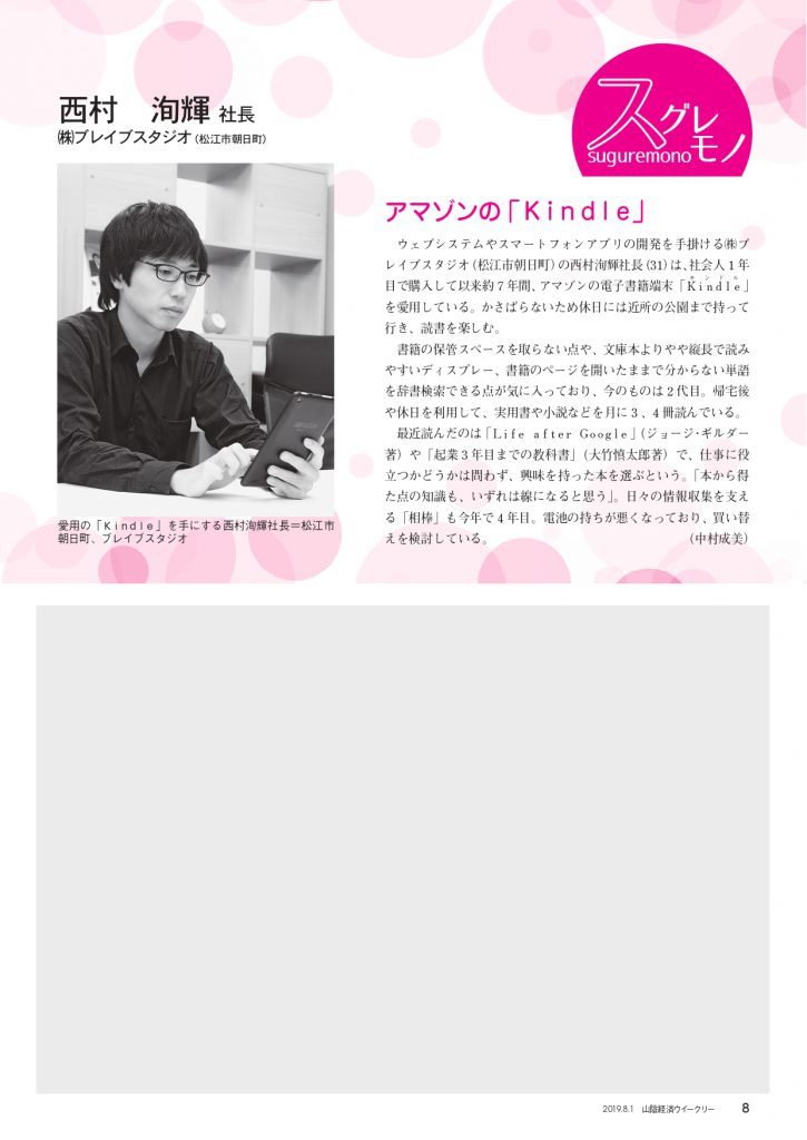 山陰中央新報社様が刊行されている雑誌「週刊山陰経済ウィークリー」に