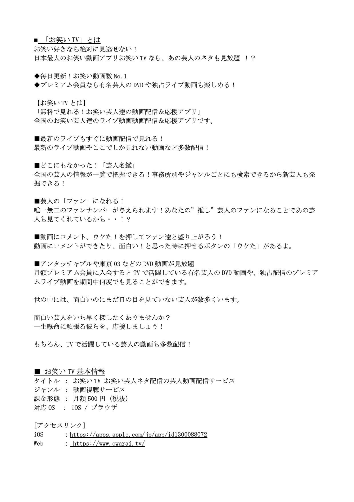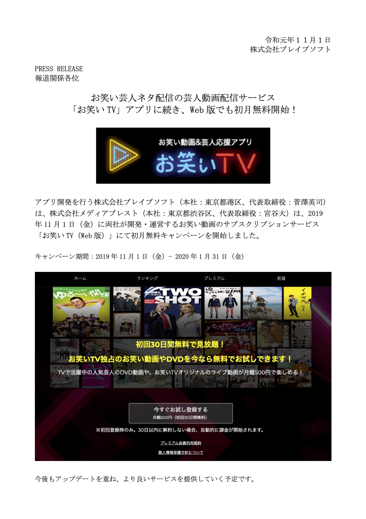 お笑い芸人ネタ配信の芸人動画配信サービス 「お笑いTV」アプリに続き、Web 版でも初月無料開始!