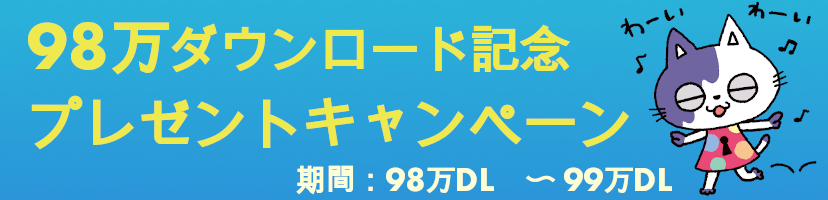 98万ダウンロード記念 プレゼントキャンペーンのお知らせ