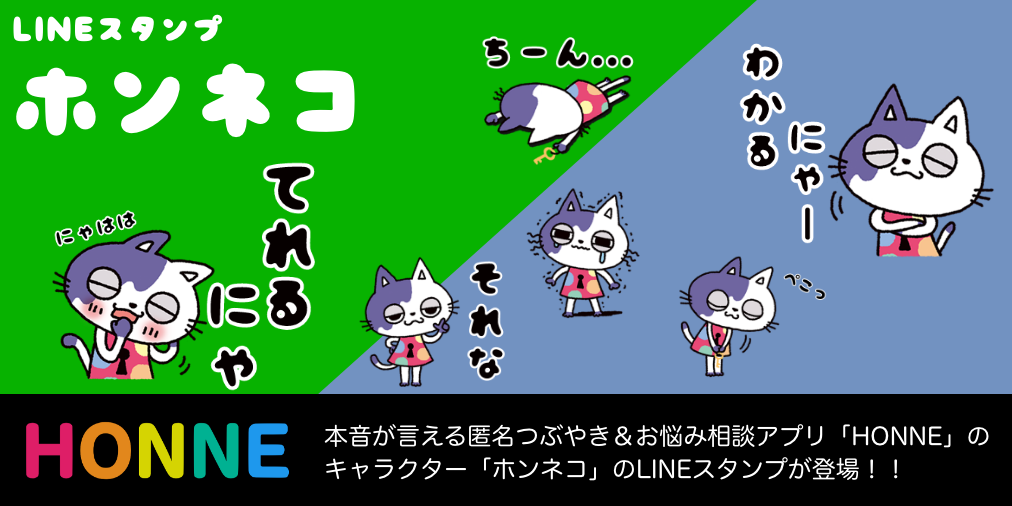 ~HONNEの人気キャラクター「ホンネコ」がついにLINEスタンプに登場~