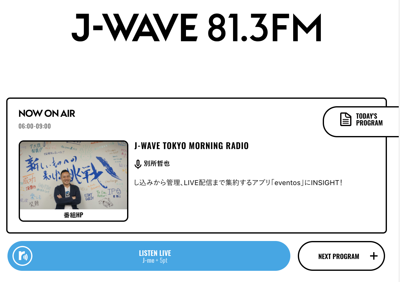番組名 :J-WAVE TOKYO MORNING RADIO