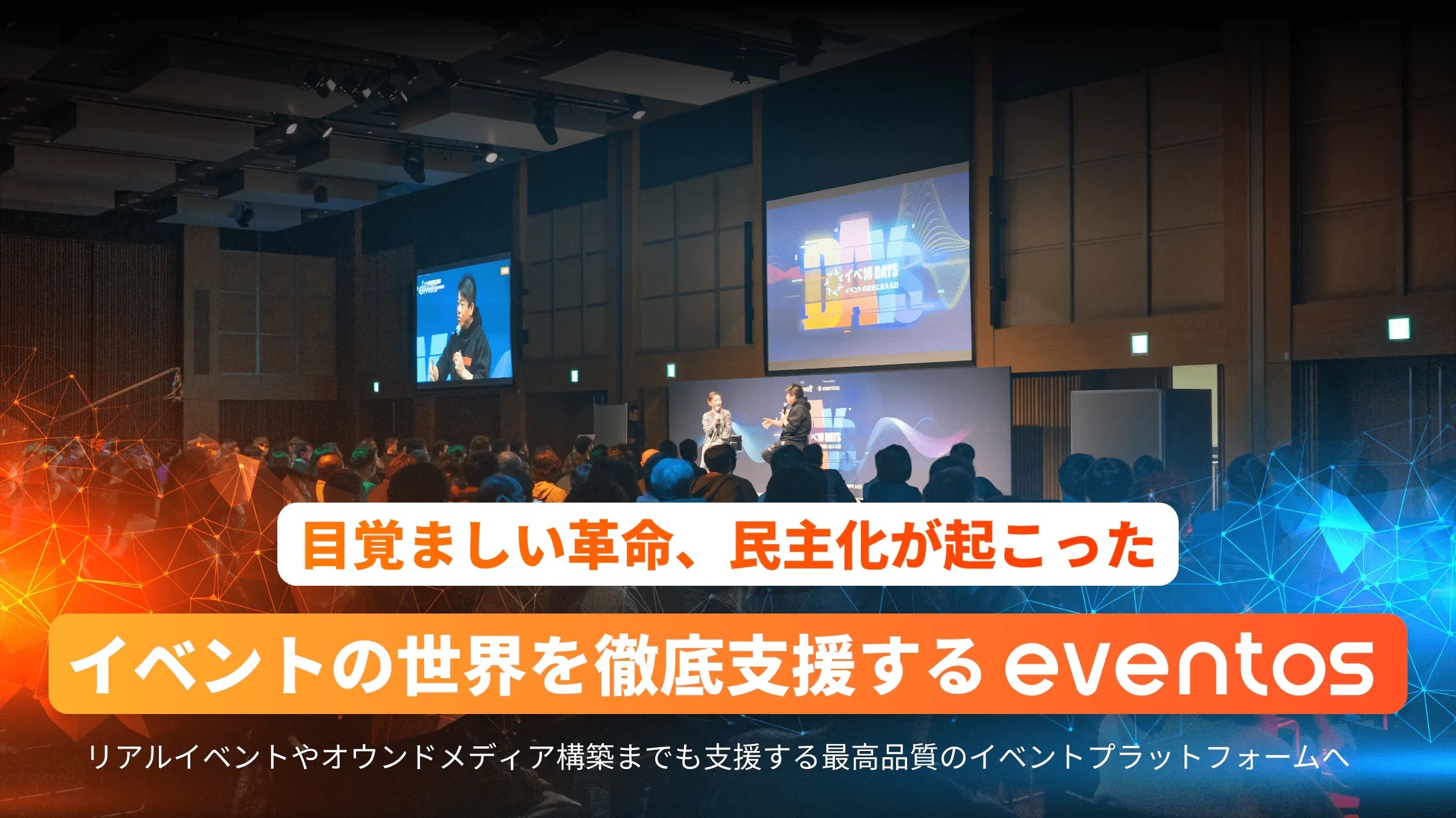 スマートフォン黎明期からアプリの開発を行い「ボケて」「TVer」「首相官邸」「31アイスクリーム」など、これまでに800件以上・累計1億ダウンロードを超える実績を誇るテック企業です。今後は、WEB×アプリでイベントを一元管理できるプラットフォーム「eventos」を展開。最新のテクノロジーを活用して、イベント体験に革命を起こすeventech(イベンテック)の実現を目指しています。